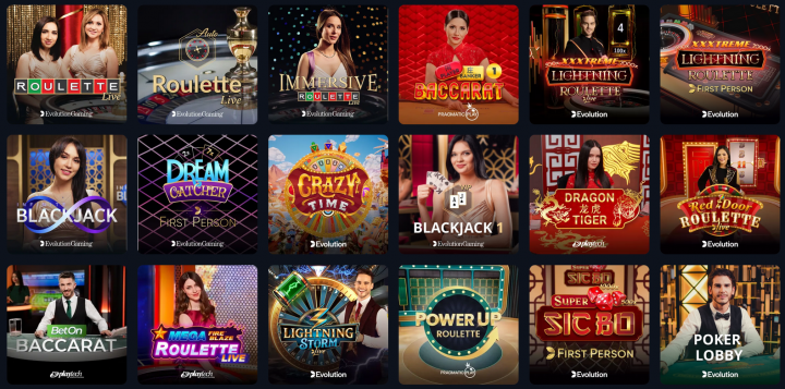- عروض برامج الألعاب التلفزيونية منها لعبة Sweet Bonanza، Monopoly ولعبة Deal or No Deal Live