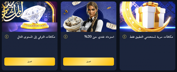 - عروض لعب مجاني: عندما تترقى بين المستويات تحصل على على لفات مجانية وعروض للرهان المجاني.