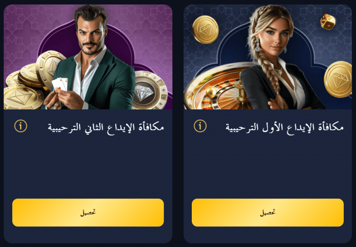 يمكنك الاستفادة بشكل كبير من مكافأة ترحيب كازينو جوهرة اون لاين. يكون ذلك من خلال المراهنة مجانا على ألعاب الكازينو المتاحة، وربح المزيد من الأموال، الترفيه بدون مخاطرة وكسب الخبرة للرهان على مختلف الألعاب. يمكنك سحب أرباح مكافأة الترحيب بعد تلبية متطلبات الرهان والتي تبلغ 35 مرة ضعف قيمة المكافأة على الإيداع الأول، و40 مرة ضعف قيمة المكافأة على الإيداع الثاني.