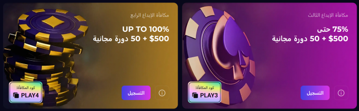 خلال جولتنا في قسم العروض، لاحظنا سخاء الحزمة الترحيبية التي تصل إلى 2,000 دولار، مع 200 لفة مجانية، مما يمنح دفعة أولية للميزانية. كما يوفر الكازينو عروض إعادة شحن أسبوعية تُسهم في تجديد الرصيد بانتظام. وبحسب تجربتنا، يبرز التميز في عجلات الحظ (المجانية، الفضية، والذهبية)، التي تتيح إمكانية الحصول على مكافآت إضافية، مما يضفي طابعاً تشويقياً يعزز من تنوع الخيارات الترفيهية المتاحة ضمن المنصة.