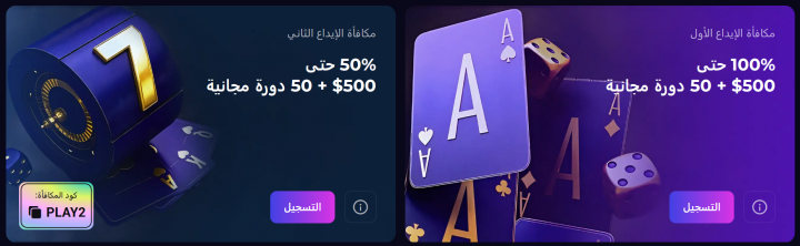 تصل الحزمة الترحيبية في مجملها إلى 2,000 دولار، موزعة على الإيداعات الأولى، إلى جانب 200 لفة مجانية. ويتطلب سحب الأرباح الناتجة عن المكافأة المالية أو اللفات المجانية تحقيق شرط تدوير يبلغ 40 ضعفًا قبل إتاحتها للسحب.