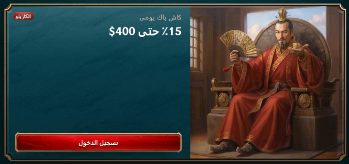 يوفر كازينو MyEmpire شبكة أمان فورية عبر عرض Daily Cashback، الذي يمنح استرداداً يصل إلى 15% بحد أقصى قدره 400 دولار. من الناحية التقنية، تكمن قوة هذا النظام في كونه يُحتسب يومياً، حيث تضاف القيمة المستحقة تلقائياً إلى حساب اللاعب، مع ضرورة قيامه بـ تفعيلها يدوياً من "قسم مكافأتي" لاستخدامها. وبفضل شرط الرهان الرمزي المحدد بمرة واحدة (x1) فقط، يمكن استخدام هذا الاسترداد بسهولة أكبر مقارنة ببعض العروض الأخرى، يمكن استخدام هذا الاسترداد بسهولة أكبر مقارنة ببعض العروض الأخرى.