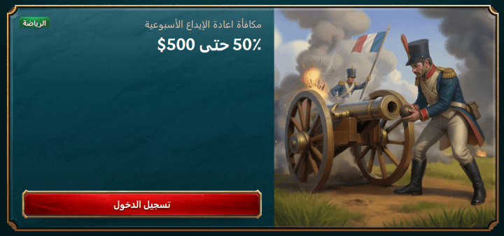 مكافأة إعادة التحميل الأسبوعية للمراهنات الرياضية في 50% حتى 500 دولار