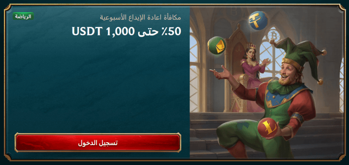 مكافأة إعادة التحميل للكريبتو في نهاية الأسبوع 50% حتى 1,000 USDT