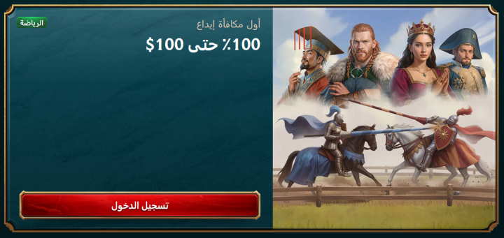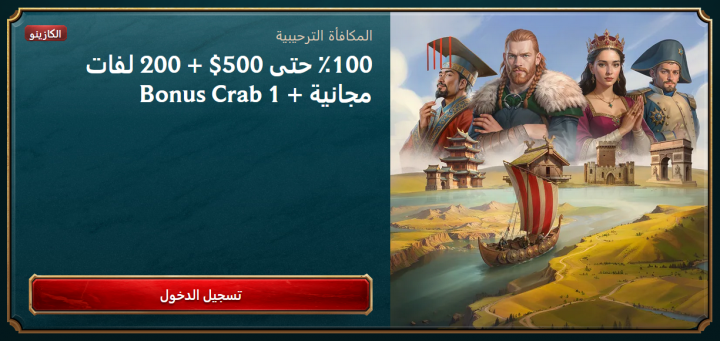 - قيمة المكافأة: يحصل اللاعب على مكافأة بنسبة 100% تصل إلى 500 دولار أمريكي، مما يعني مضاعفة القوة الشرائية عند أول إيداع.