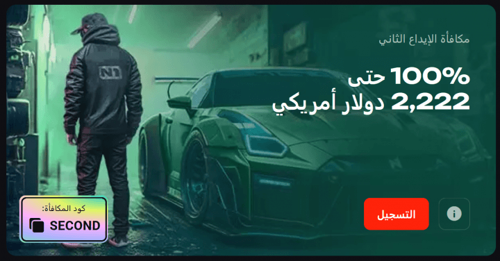 مكافأة الإيداع الثاني - قسم الكازينو 100% حتى $2,222