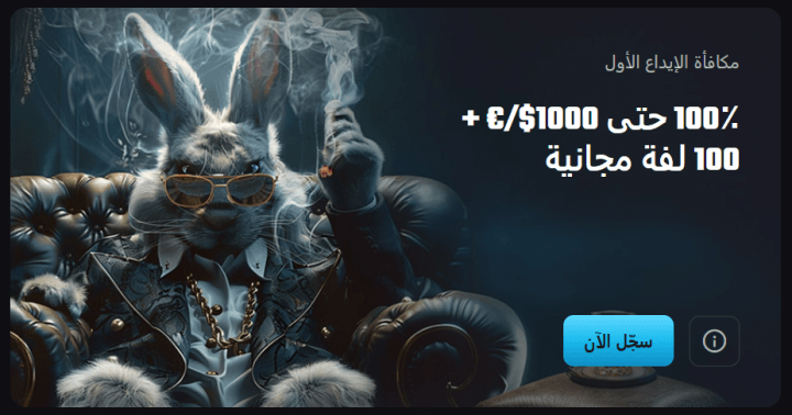 - مكافأة الإيداع الأول: تقدّم المنصة مكافأة بنسبة 100% تصل قيمتها إلى 1,000 دولار، مع 100 دورة مجانية لتعزيز بداية تجربة اللعب على الكازينو، حيث يُفعَّل الإيداع الأول تلقائياً دون الحاجة إلى إدخال رمز ترويجي.