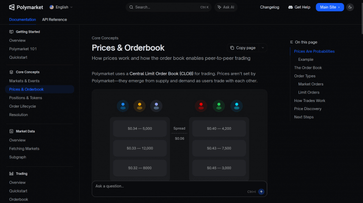 Unlike sportsbooks, where an operator sets the odds, prediction markets run on an order book. This is a public list showing what participants are willing to pay for a contract (bid price) and the price they’ll accept to sell one (ask price).