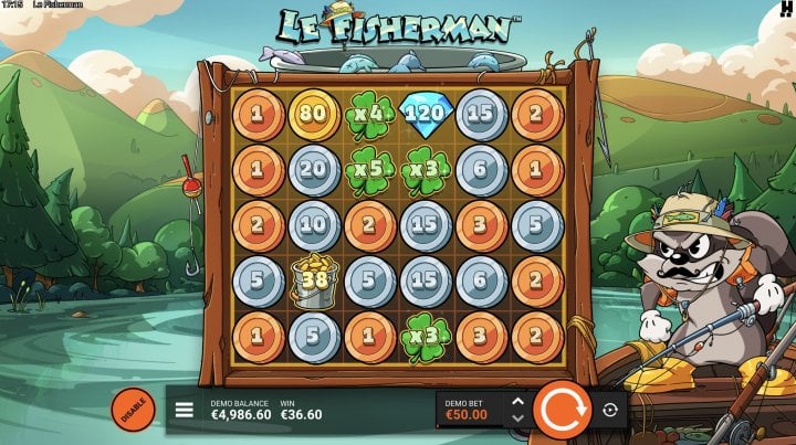 In this title, the developer returns to Golden Squares and adds Buckets and Global Buckets to collect Coin values across adjacent or all grid positions. Besides, in Le Fisherman, the player faces an Epic Rainbow – it activates all grid positions simultaneously. Another addition is the Big Catch Bar, which is basically a four-level progressive meter that makes each Rainbow progressively more powerful as it fills. Three bonus rounds follow, each pushing the Big Catch Bar further.