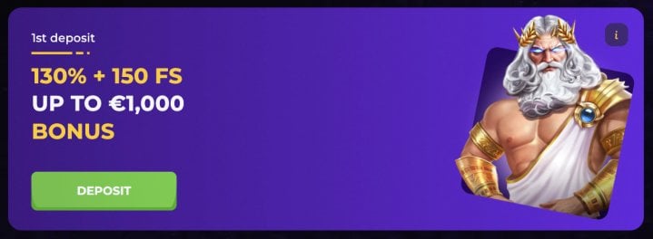 130% up to €450 + 150 Free Spins