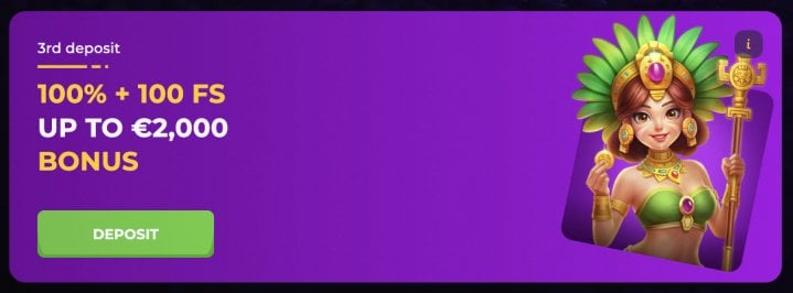 - Third Deposit: 100% up to 450 EUR / 680 CAD + 100 FS (Promo Code - WELCOMEBONUS3)