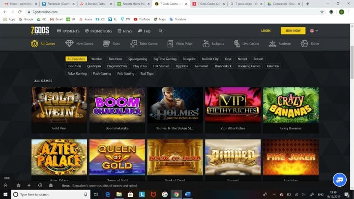 Popular titles at the 7 Gods Casino include Gold Vein, Crazy Bananas, Pimped, and Raging Rex. You’ll also find plenty of older and modern games to enjoy with lots of gameplay variation available to keep your slots entertainment fresh.