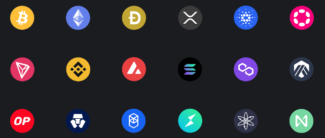 - Cryptocurrencies Supported: BTC, ETH, USDT, XRP, DOGE, LTC, BCH, TRX, BNB, SOL, ADA, ETC, DOT, AVAX, NEAR, BUSD, USDC, UNI, MATIC, LINK, VET, XLM, SHIB, EOS, DAI, AAVE, YFI, FLOKI, SAND, TUSD, FTM, LUNA, ZIL, TOMO, FLOOR, GALA, HEX, ZCASH, XMR, XLM, BCD, BIT, AMP, SUNNEW, LUNC, GODS, DCR, PEOPLE, BAYC, PUNKS, AZUKI, USTC, VTHO, PAR, HNT, BTCB, KAVA, NEXO, FIL, GST, SAMO, ROSE, SNACK, KLAY, TON, YGG, WCK, WBNB, CRO, HBAR, RVN, ATOM, SATS, BAT, APE, WAVES, SAND, NANO, DGB, AXS, FIL, LUNC, BLUR, ONE, APT, BCT, USTC, BCR, WCK, and PEPE.