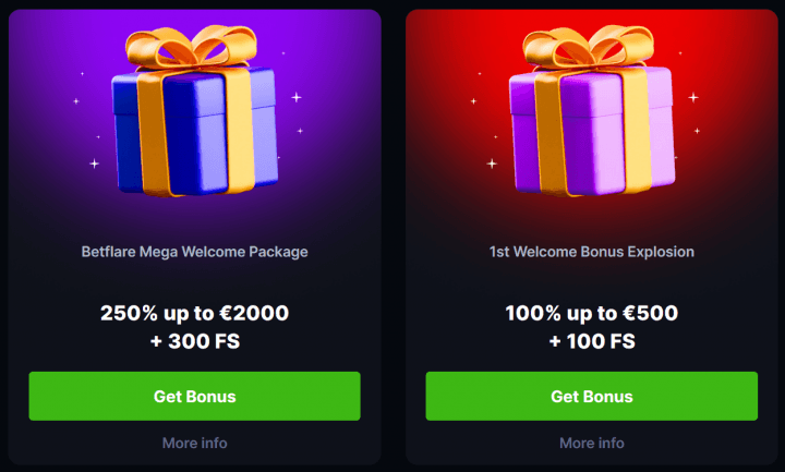 Players are treated to a broad range of attractive bonuses and promotions at Betflare, starting with a three-part welcome package packed with free spins and match deposits. Beyond that, you’ll come across two regular reloads, wheel spins, tournaments, and a cashback deal that benefits players of all loyalty levels.
