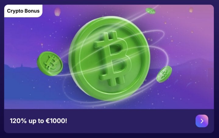 - Crypto Reload Bonus: A more accessible bonus is the crypto reload, worth 120% up to €1,000 / C$1,500 / NZ$1,000, and available once per day, seven days a week. Deposit €25 / C$35 / NZ$25 using any supported cryptocurrency to claim the offer, which has a 40x rollover (bonus + deposit).