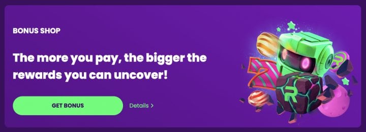 - Bonus Shop: Use points or real money to buy Lootboxes. Winnings have a 45x wagering requirement and a withdrawal limit of 50 EUR / 75 CAD / 75 AUD / 75 NZD.
