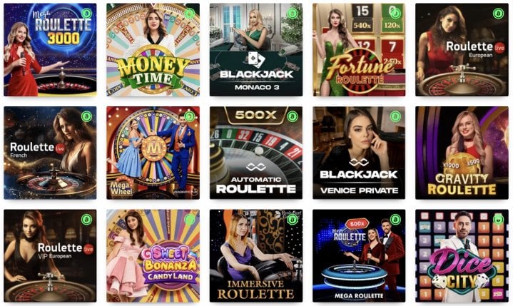 - Traditional formats: Live Roulette in Spanish, French Roulette, and Caribbean Stud Poker.