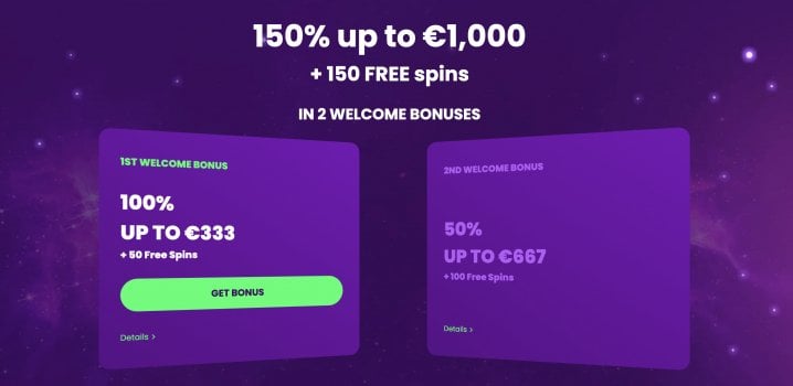 100% up to €333 + 50 Free Spins