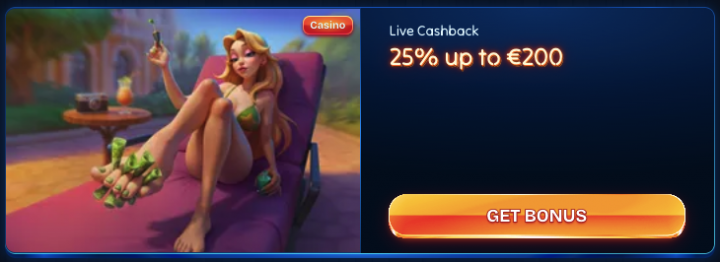 - Live Casino Cashback: This Live Casino cashback runs continuously across all VIP tiers, returning 25% on net losses up to €200 / C$300 / NZ$400 / A$300 weekly. The setup is relatively hands-off with no opt-in necessary, though you'll need to manually request your rebate via Live Chat or email each Monday. Once received, there’s just a 1x rollover, which is as good as it gets for live dealer cashback deals.