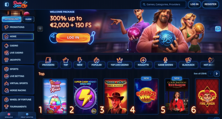 DudeSpin is a newcomer to the iGaming industry, introducing a unique bowling-themed online casino and sportsbook in 2025 via Involute Games, a Costa Rican company. There are over 14,000 games, and new players have three chances to hit a strike and convert a casino welcome bonus worth up to €2,000 / C$3,000 / NZ$4,000 / A$3,000 + 150 free spins into real money.