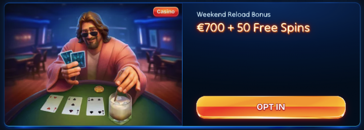 - Weekend Reload Bonus: Appearing only from Friday to Sunday, you can claim a 50% match up to €700 / NZ$1,400 / A$1,050 + 50 Free Spins. There is a 35x wagering requirement (bonus + deposit), which makes converting the bonus challenging, while the 40x wagering requirement on free spins is more reasonable and standard for this type of offer.