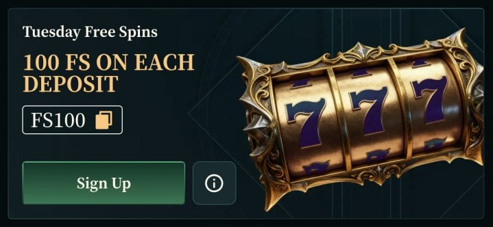 Tuesday Free Spins – up to 100 FS