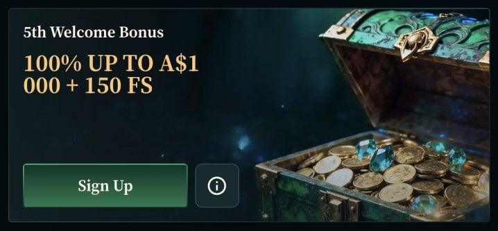 - Fifth Deposit: 100% match up to A$1,000 / NZ$1,000 + 150 FS on Aztec Magic Bonanza