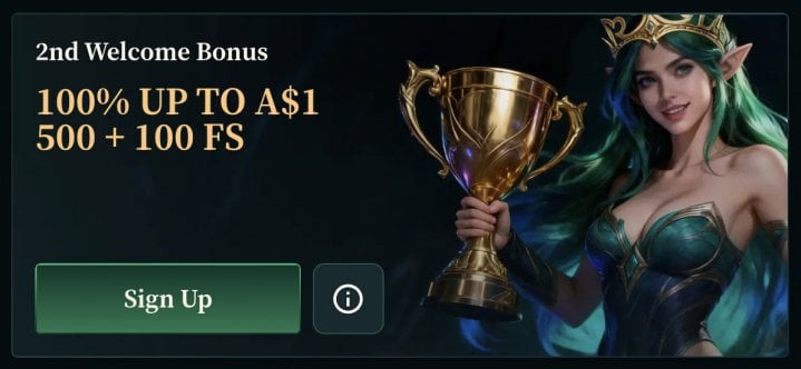 - Third Deposit: 75% match up to A$2,500 / NZ$2,500 + 50 FS on Book of the Fallen