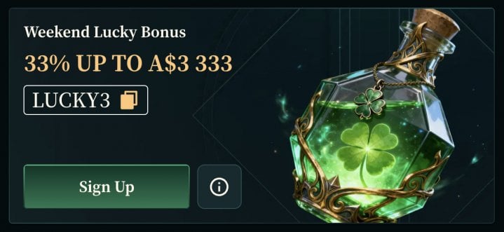 Weekend Lucky Bonus – 33% up to A$3,333 / NZ$3,333