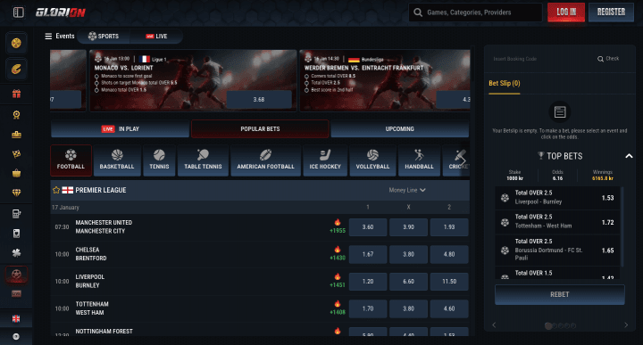 For players who enjoy splitting their time between casino games and sports betting, Glorion’s sportsbook is more than sufficient. There is no need to maintain a separate account, making it convenient for a combined gaming experience.
