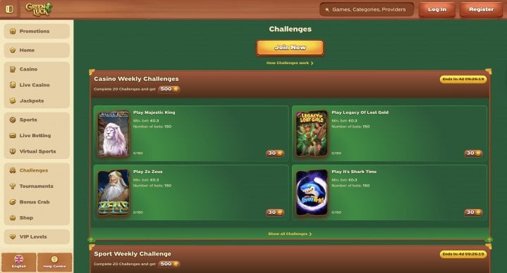 There is plenty of added value coming via GreenLuck Casino bonus deals. The welcome bonus is excellent value with low wagering requirements. Then, you have cashback, free spins, and reload bonus deals throughout the week. To add to the fun of playing on this iGaming platform are tournaments, a bonus shop, and challenges.