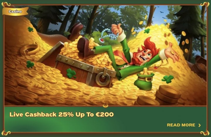 - Live Casino Cashback: 25% cashback on all losses up to 200 EUR/USD, 300 CAD/AUD, or 400 NZD. The cashback comes with only a 1x wagering requirement.