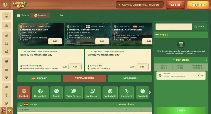 GreenLuck online casino and sportsbook is a gambling entertainment platform with a fun ‘Luck of the Irish’ theme. The interface has a modern design with easy-to-navigate menus and gaming lobbies. What’s more, there are thousands of online slots and hundreds of live dealer games. Players from Ireland, Australia, New Zealand and Canada can deposit using domestic currency. Plus, GreenLuck also supports cryptocurrency.