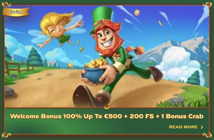 - First Deposit: 100% deposit match up to 500 EUR/USD, 750 CAD/AUD or 1,000 NZD + 200 Free Spins + 1 Bonus Crab.