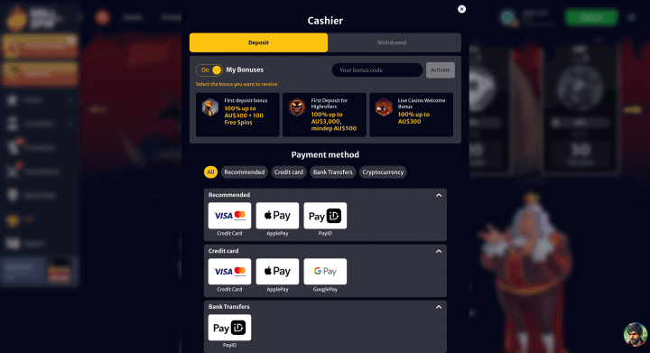 - PayID and Apple Pay are available for Australian players