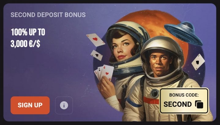 - Second Deposit: 100% to €3,000 / C$4,500 / A$4,800 / NZ$5,250 (SECOND)