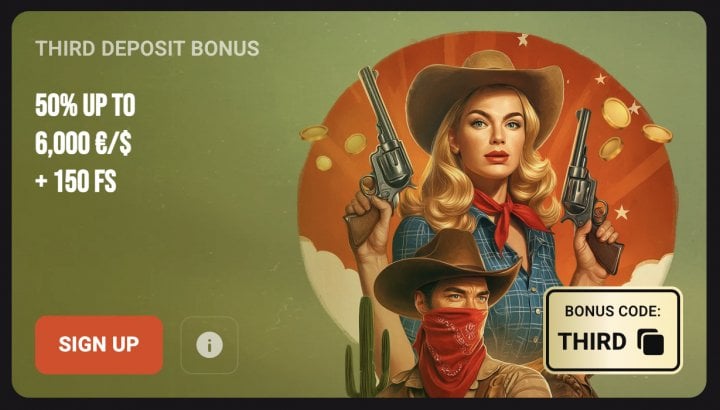 - Third Deposit: 50% to €6,000 / C$9,000 / A$9,600 / NZ$10,500 + 150 FS (THIRD)