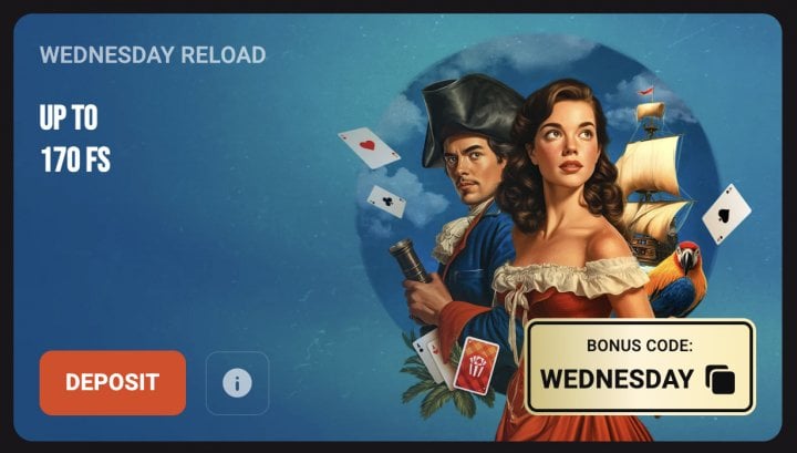 - Weekend (Saturday/Sunday) Reload: 30% up to €500 / C$750 / A$800 / NZ$875 on every deposit (UNLIM30). Minimum €20 / C$30 / A$32 / NZ$35. 40x wagering. Must clear current bonus before claiming next. Unlimited.