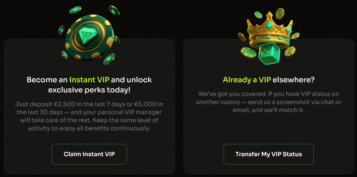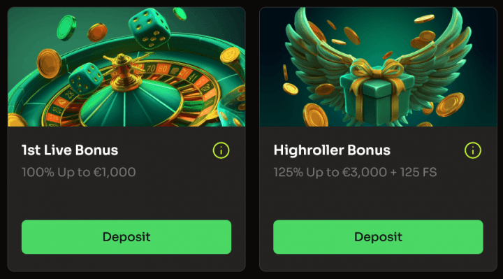 After you claim the high roller bonus, you still have the option to claim the second to fifth deposit match welcome bonuses mentioned above. Combined with a high roller deal, you can claim up to €8,500 + 325 free spins.