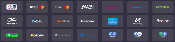 - E-wallets: Mifinity, Luxon Pay, Skrill, Neteller