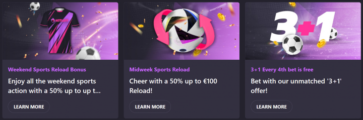 - Sportsbook Bonuses: There are two sports betting welcome bonuses, as well as midweek and weekend deals for regular bettors. Plus, the 3+1 offer provides a free bet for every 4th bet you make.