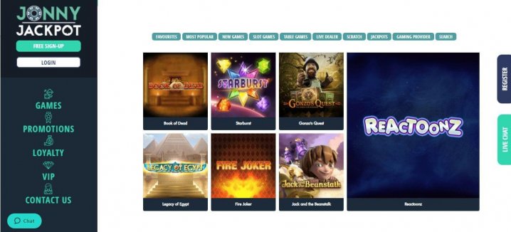 With its trustworthy reputation comes an assortment of over 50 top software providers who have flocked to Jonny Jackpot. Big names like Evolution Gaming, Quickspin, Play’N Go, Rabcat, Big Time Gaming, NetEnt, and Microgaming, as well as newer developers such as 1x2 Gaming and 2by2 Games, are all hosted here presenting in excess of 1,000 games such as jackpots, various slots titles, a huge number of table and card games, as well as 4 live dealer games.
