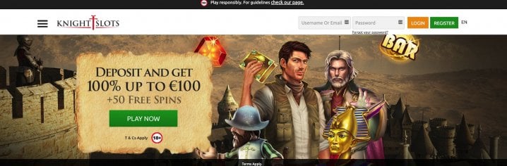 After signing up with Knight Slots and the completion of the verification process, players are welcomed with a bonus. The offer is a 100% match deposit up to €100 and 100 free spins.