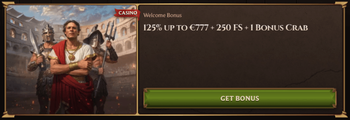 Online Casino Welcome Bonus - 125% up to €777 / C$1,165 / A$1,165 / NZ$1,554 + 250 Free Spins & 1 Bonus Crab