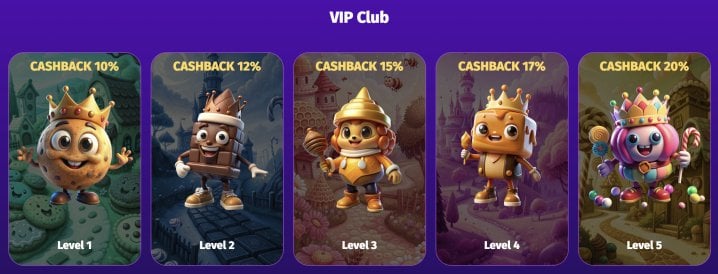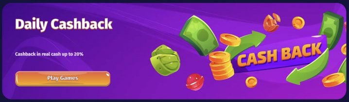 - Wager-Free Daily Cashback: Players of all VIP levels automatically receive daily cashback on their previous day's losses. You will get between 10% and 20%, depending on your current loyalty level. The funds are credited to your real money balance and do not require wagering.
