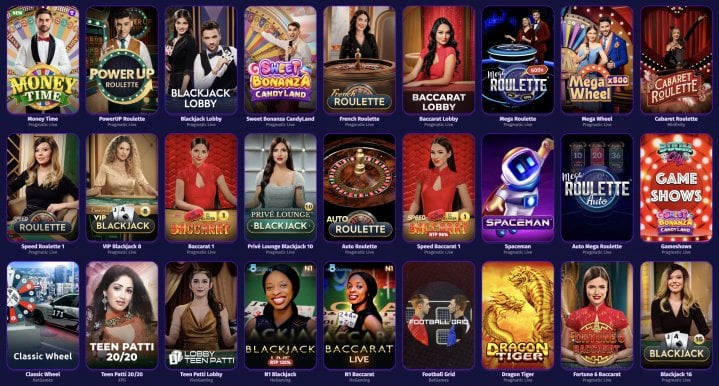 Arguably, the live casino lobby is where Lolly Spins makes its strongest impression. The platform partners with more than a dozen live-dealer studios, including well-known providers such as Evolution, Pragmatic Play Live, Vivo Gaming, BetGames, and Lucky Streak. Combined, these studios deliver a catalogue of over 300 live titles, covering classic roulette and blackjack tables, a wide range of card, poker, and dice games, as well as award-winning wheel and lottery-style game shows.