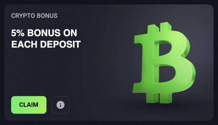 This 5% crypto deposit bonus simply adds extra funds to every cryptocurrency top-up with no wagering, no cap, and no withdrawal restrictions, so if you deposit €/£100, you play with €/£105 straight away and can cash out anytime. It suits players who prefer real money over sticky bonuses and long playthrough rules.