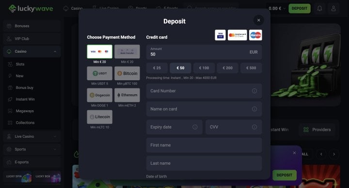 LuckyWave Online Casino Withdrawal Times, Limits, and Fees