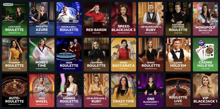 We tested several tables across different providers and didn’t run into streaming or interface issues. High-roller tables are available with limits reaching €/£20,000 per bet, but low-stakes options are still easy to find. Overall, the live casino works best for players who want variety across providers without hopping between sites.