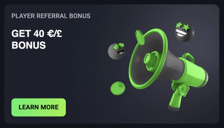 - Player Referral Bonus: The Referral Bonus pays you €/£40 for each friend you invite who signs up through your link and makes a first deposit of at least €/£20. The reward comes with a light 10x wagering requirement, so it’s pretty easy to clear and ideal if you regularly bring friends to the site and want simple bonus cash.